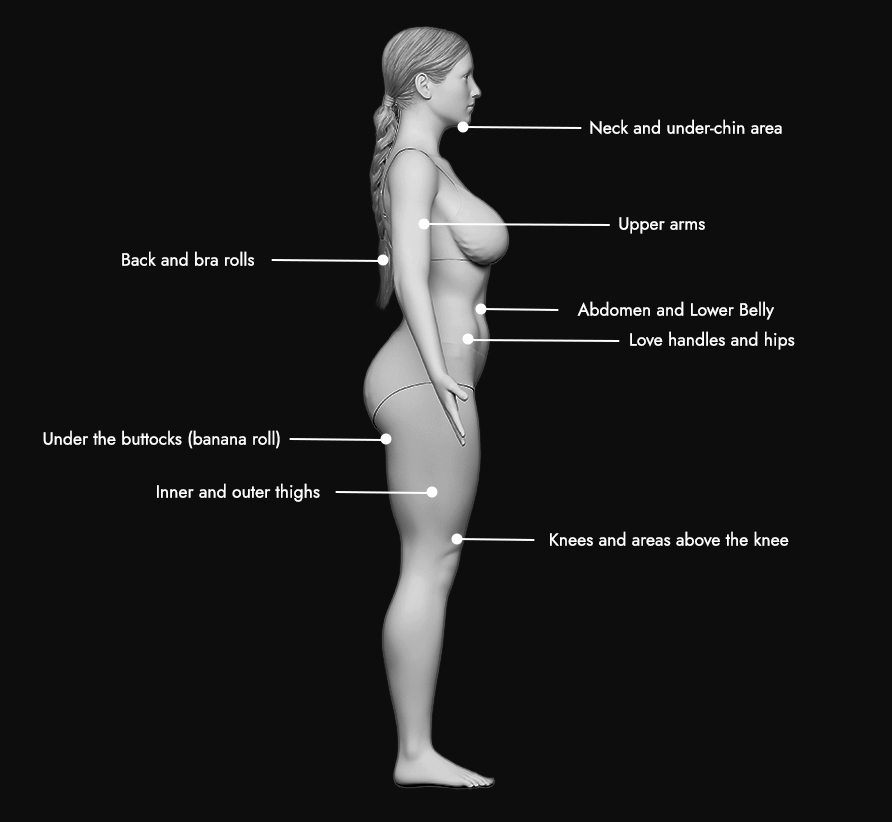 Women frequently choose CoolSculpting Elite to contour areas prone to stubborn fat deposits, such as: